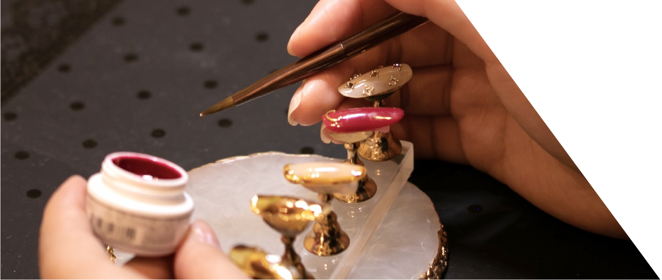 筆で色を塗り、ストーンやシールでデコレーションをします。